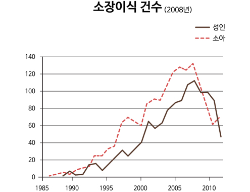 전체적인 케이스는 증가하였으나 임상적으로 2008년이후 감소추세임