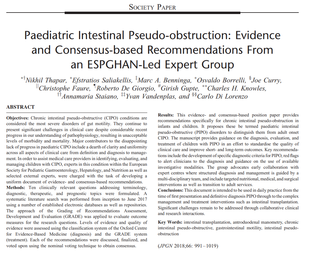 소아 장 가성폐쇄-근거기반 권고문_유럽소아소화기영양학회 2018 JGPN