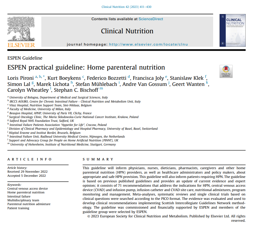 가정 정맥 영양 가이드라인 (ESPEN, 2023)